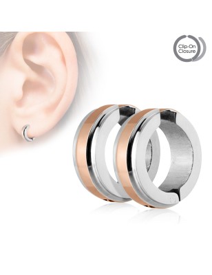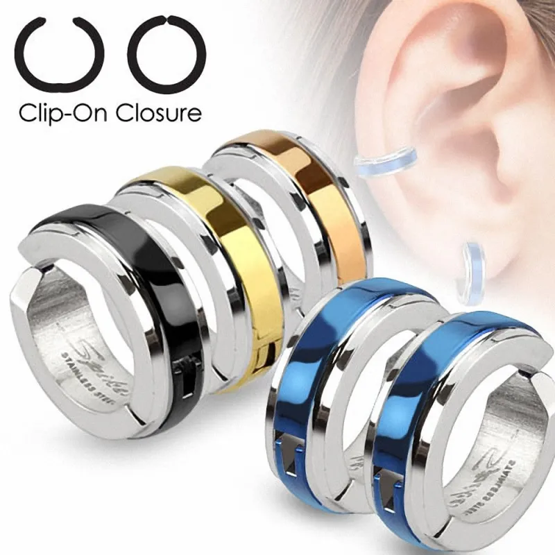 Paire de boucles d'oreilles clipsables, en acier inoxydable argenté, avec un centre de couleur.