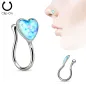 Faux piercing de nez, qui se éclipse sur la narine, représentant un motif coeur opalescent turquoise.