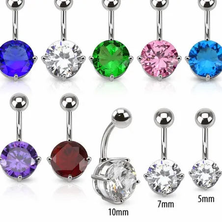 Piercing de nombril serti d'une pierre solitaire en zirconium.