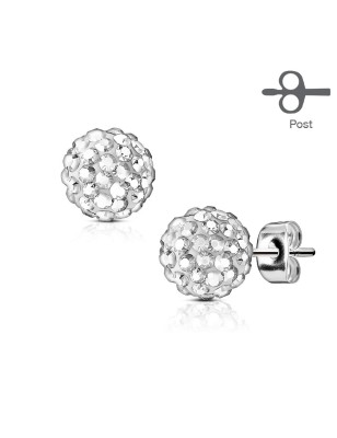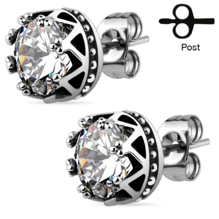 Paire de boucle d'oreille type "clous" serti d'une pierre ronde de couleur blanche.