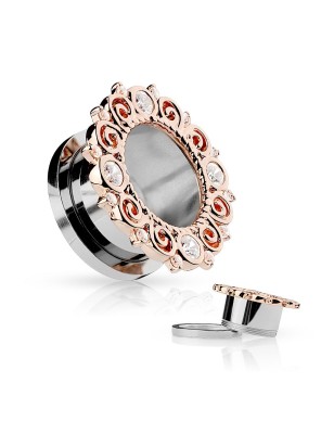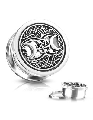 Piercing tunnel pour oreille en acier chirurgical, représentant des crânes.