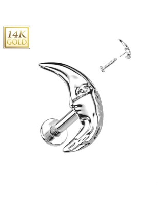 Piercing labret oreille or jaune 14 carats vissage interne zircon
