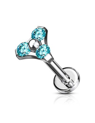Piercing de type labret, pour l'oreille, représentant trois fleurs pavées de strass.
