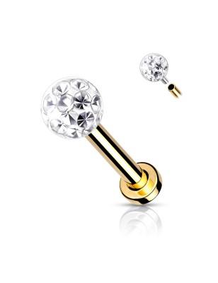 Piercing labret en véritable Or jaune 14K, avec un embout serti d'une pierre en zircon.
