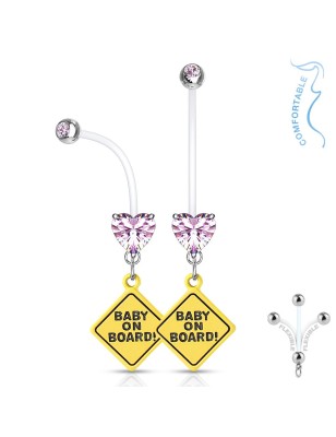 Piercing pour le nombril en acier chirurgical serti d'un large gemme ovale.