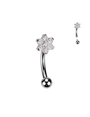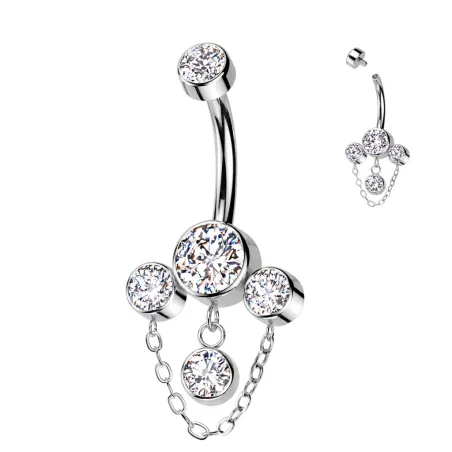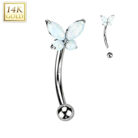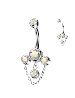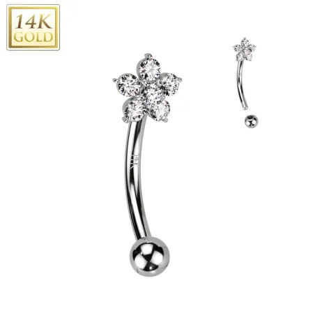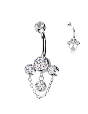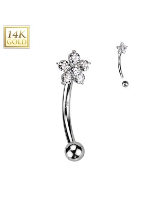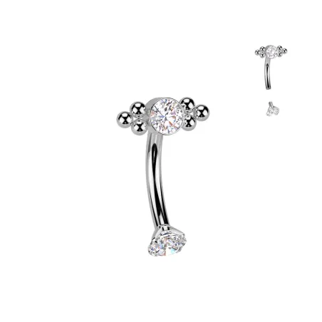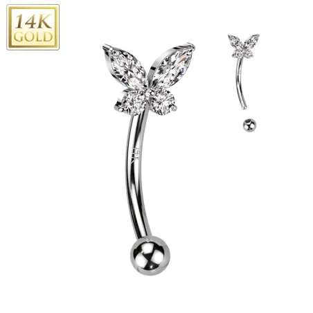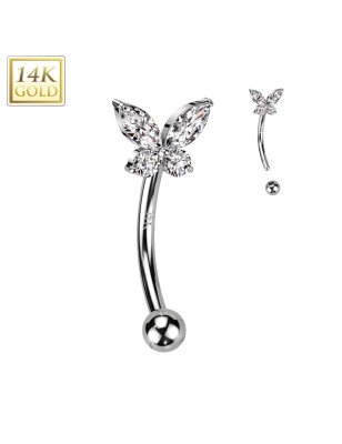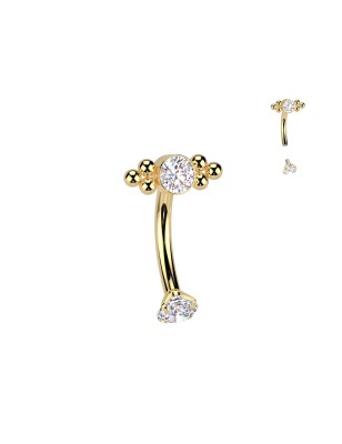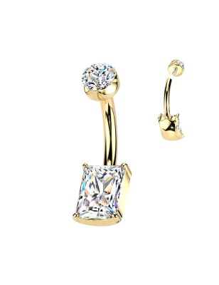 Piercing de nombril en titane ASTM F136 doré par PVD , orné d’un zirconium noir taille marquise entouré de zircons blancs. Élégant, hypoallergénique et durable.