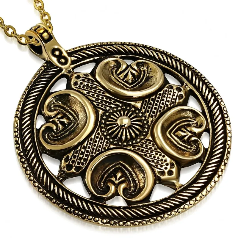Pendentif en bronze cercle à coeurs
