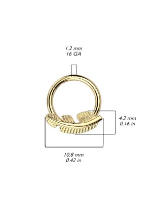 Piercing en anneau clipsable, en titane G23 de haute qualité, recouvert d'un placage de couleur dorée, et représentant une feuille.