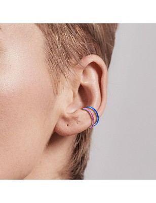 Piercing en anneau clipsable, en titane ASTM F136 de haute qualité, avec une bande d'opale de synthèse de couleur bleue.