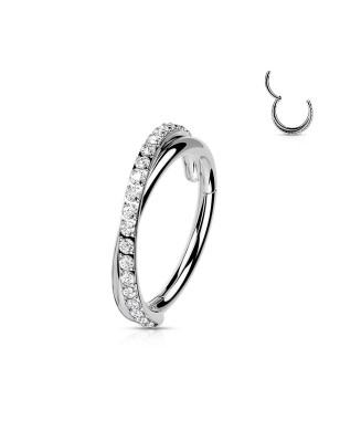 Piercing anneau en acier chirurgical, clipsable, sertie de zirconium.