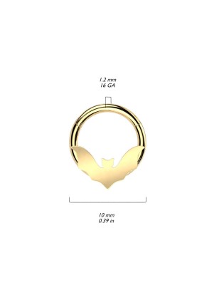 Piercing anneau articulé, en acier chirurgical doré, de qualité haute précision représentant une chauve-souris.