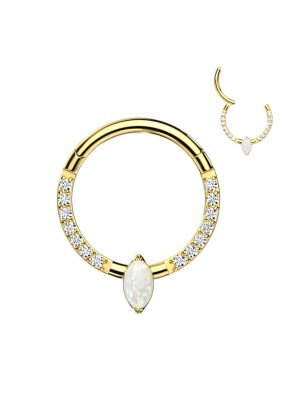 Piercing en anneau clipsable, en titane ASTM F-136 de haute qualité, et serti d'une opalite blanche forme marquise.