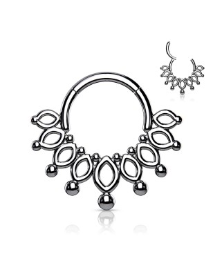 Piercing anneau en acier chirurgical, clipsable, représentant une couronne avec des perles.