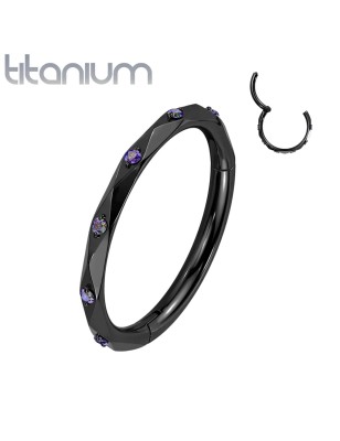 Piercing anneau en titane, clipsable, avec facettes en losanges et strass.