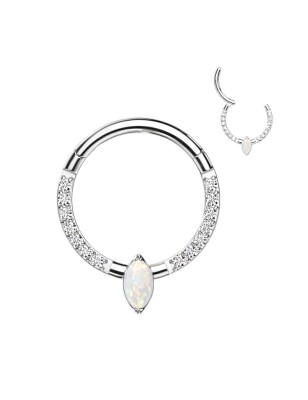 Piercing anneau en acier chirurgical, clipsable, serti de 6 strass faisant face.