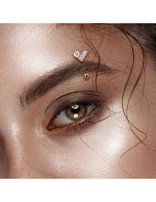 Piercing de type banane pour l'arcade, en acier chirurgical 316L, plaqué or rose 14 carats et serti de trois pierres en zirconium blanc (deux rondes et une carrée), formant un coeur.