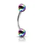 Piercing de type banane, pour l'arcade, en acier chirurgical 316L, boules avec revêtement métallisé couleur rainbow.