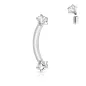 Piercing de type banane, pour l'arcade, en acier chirurgical 316L, serti de deux pierres en zirconium blanc, en forme d'étoiles.