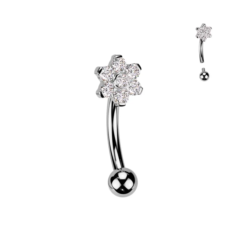 Piercing arcade en titane avec fleur sertie de zirconiums