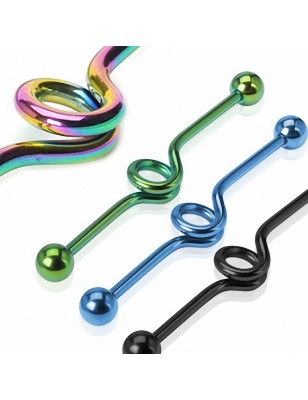 Piercing de type "fer à cheval" en acier chirurgical, striés, avec boules.