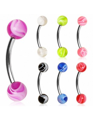 Piercing banane pour l'arcade, en acier chirurgical 316L, avec boules en acrylique ayant un motif marbré.