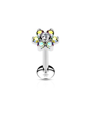 Piercing pour le cartilage de l'oreille, en acier chirurgical, serti de trois petits cristaux ronds.
