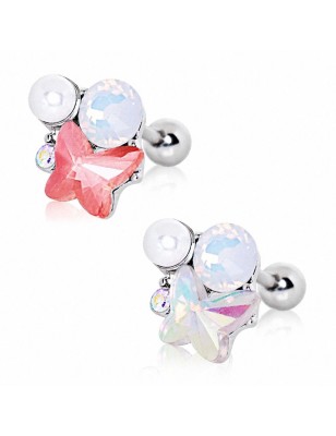 Piercing barbell, pour le cartilage / hélix, en acier chirurgical 316L, représentant une fleur rose avec une perle et une pierre en zirconium.