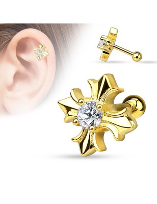 Piercing barbell, pour le cartilage / hélix et le tragus de l'oreille, en acier chirurgical 316L, représentant une fleur de vigne sertie de strass.