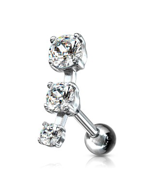 Piercing pour tragus et cartilage en acier chirurgical, serti de 3 strass.