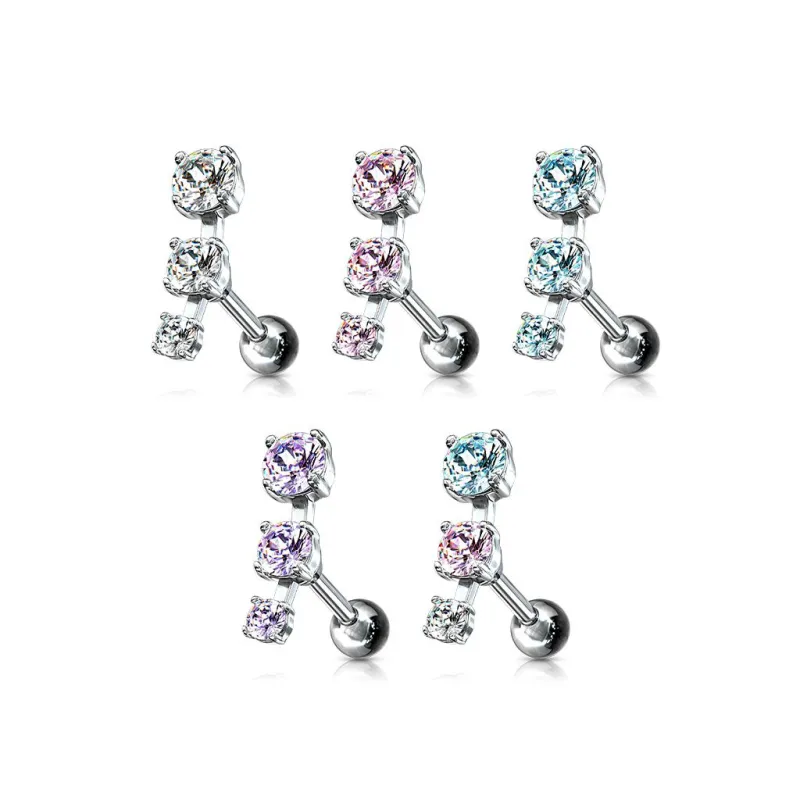 Piercing oreille Tragus Cartilage Triple Gemmes