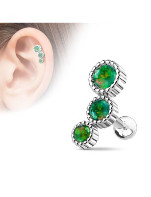 Piercing pour le cartilage (helix) de l'oreille, représentant un motif tribal et une plume.