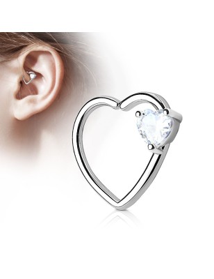 Piercing de type anneau captif, en véritable or blanc 14 carats, serti d'une pierre en opale de synthèse de couleur blanche.