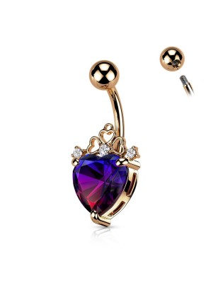 Piercing de type barbell conçu pour le cartilage de l'oreille (helix), en acier chirurgical 316L, serti d'un cristal en forme de coeur de couleur vitrail.