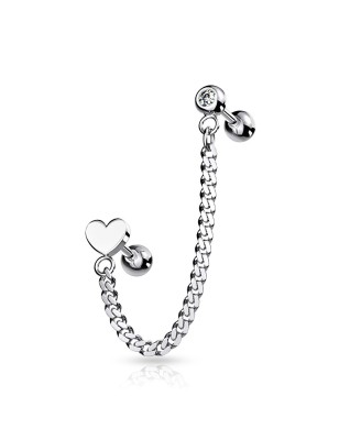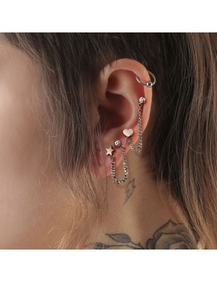 Double piercing barbell pour l'oreille, en acier chirurgical 316L, relié entre eux par une chaîne.