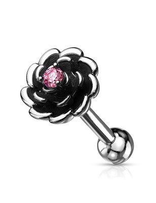 Piercing pour le cartilage de l'oreille, en acier chirurgical, représentant une fleur antique.