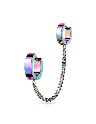 Double piercing anneaux click pour l'oreille, en acier chirurgical 316L, recouvert d'un placage de couleur rosée, relié entre eux par une chaine.