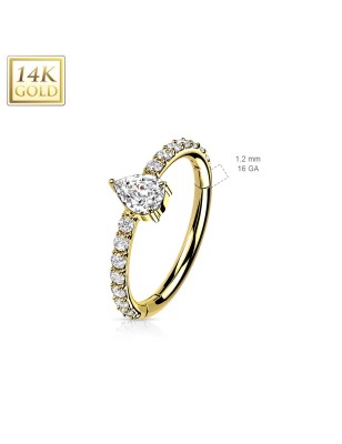 Piercing de type anneau, en véritable or jaune 14 carats, serti d'une pierre en forme de larme.