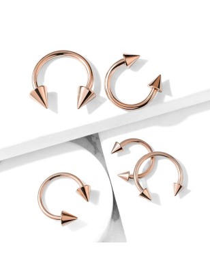 Piercing de type fer à cheval plaqué de couleur or rose sur de l'acier chirurgical 316L, avec des pointes.
