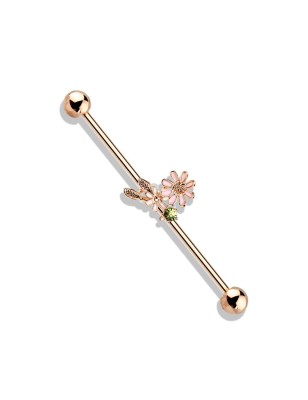 Piercing de type industriel, pour l'oreille, en acier chirurgical 316L, représentant des fleurs et des feuilles.