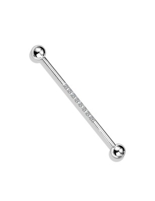 Piercing industriel en acier chirurgical, avec une série de strass en son centre.