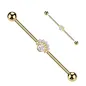 Piercing industriel, pour l'oreille, en acier chirurgical 316L plaqué de couleur dorée et serti d'un zirconium rond entouré d'un éventail de strass.