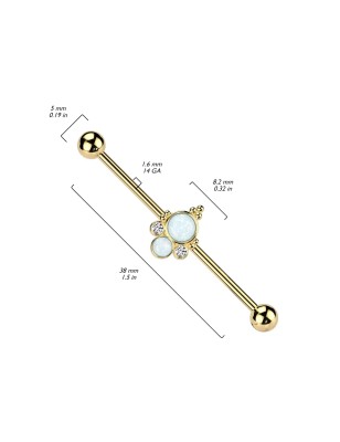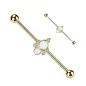 Piercing industriel, pour l'oreille, en acier chirurgical 316L plaqué de couleur dorée, serti de deux pierres en opale de synthèse.