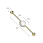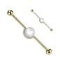 Piercing industriel, pour l'oreille, en acier chirurgical 316L plaqué de couleur dorée, serti d'une pierre entourée de zirconiums blancs sur sa moitié inférieure.