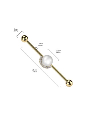 Piercing industriel en acier chirurgical doré perle avec demi-cercle de zircons
