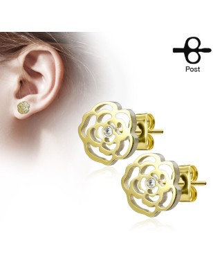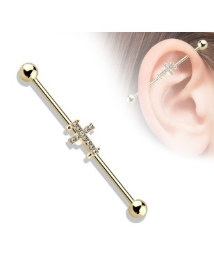 Piercing industriel, pour l'oreille, en acier chirurgical 316L, représentant une croix, de couleur dorée.