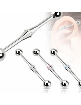 Piercing en acier chirurgical de type barbell avec des billes, pour l'oreille.