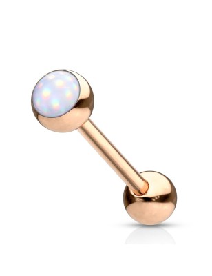 Piercing barbell pour la langue, en acier chirurgical 316L, plaqué de couleur noire, et serti d'une pierre en epoxy à effet lumineux de couleur blanche.