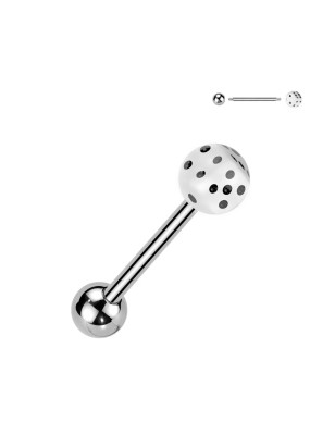 Piercing barbell en acier chirurgical, pour la langue, avec une boule en acrylique, représentant un dé à l'intérieur d'une bulle.