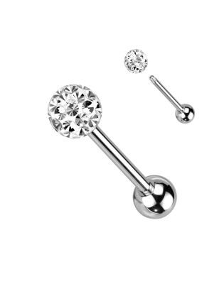 Piercing pour la langue en acier chirurgical, avec une bille en acier et une bille sertie de multiples cristaux Férido.