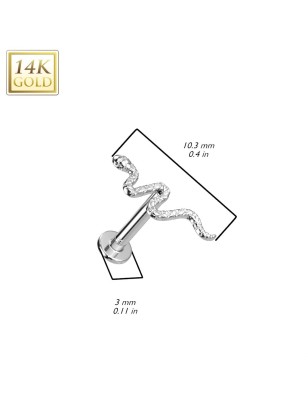 Piercing labret en véritable Or blanc 14K, avec un embout représentant un serpent.